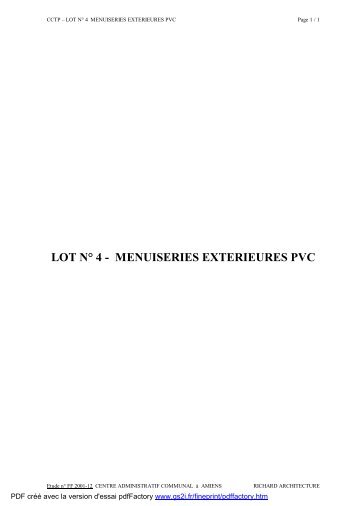 Zones de circulation et couloirs l intrieur des btiments. Matre d ouvrage PHASE DATE Fvrier 20Pice crites CCTP LOT 07. Lot n : MENUISERIE INTERIEURE BOIS MENUISERIE INTERIEURE BOIS. Le ministre de l intrieur, de l outre-mer et des collectivits territoriales. Fentres de toit : Ouverture basculante vers l intrieur (poigne en traverse haute).